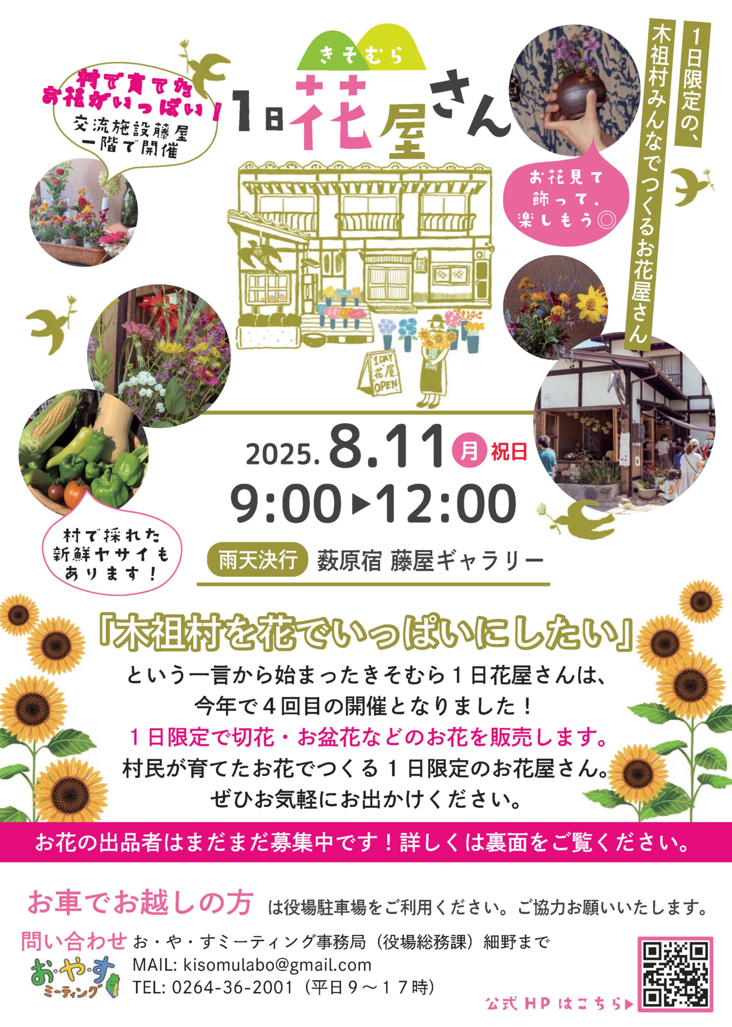 【締め切りました】「きそむら1日花屋さん」お花の出品者募集中!
