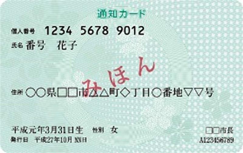 平成27年11月以降順次みなさんの住民票の住所に、マイナンバーが記された「通知カード」が届きます。大切に保管してください。
